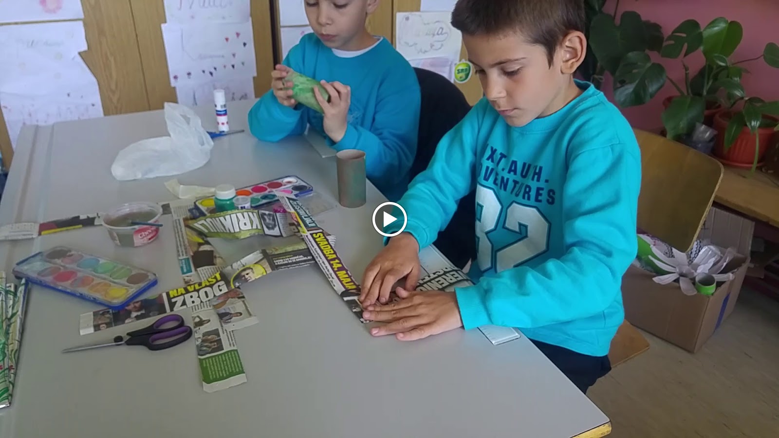 Моји ђаци су били креативни у стварању "Еко играчака" од папира. Уз то развијали су и моторику шаке, такође веома важно за њихов узраст. А о стрпљењу да и не говорим. Па, ето, није им било лако, али пошто су све радили у пару, било им је забавно. Њихове играчке сад чекају да се употребе на неком од наставних часова.